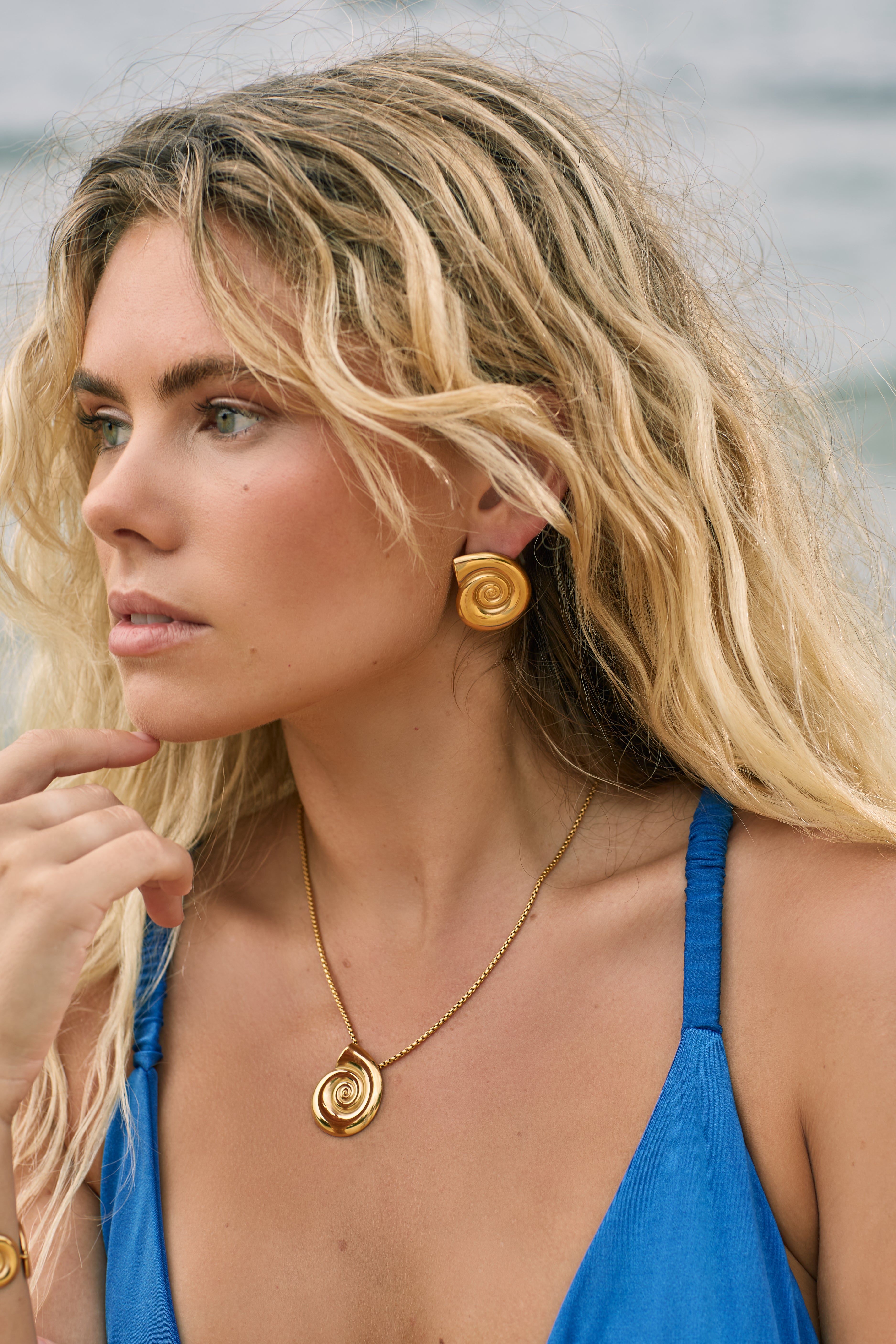 The stunning Dune necklace will have you feeling like you're on a luxurious resort vacation every single day. A super lightweight beachy statement vibe.