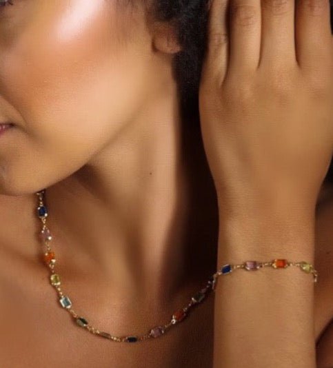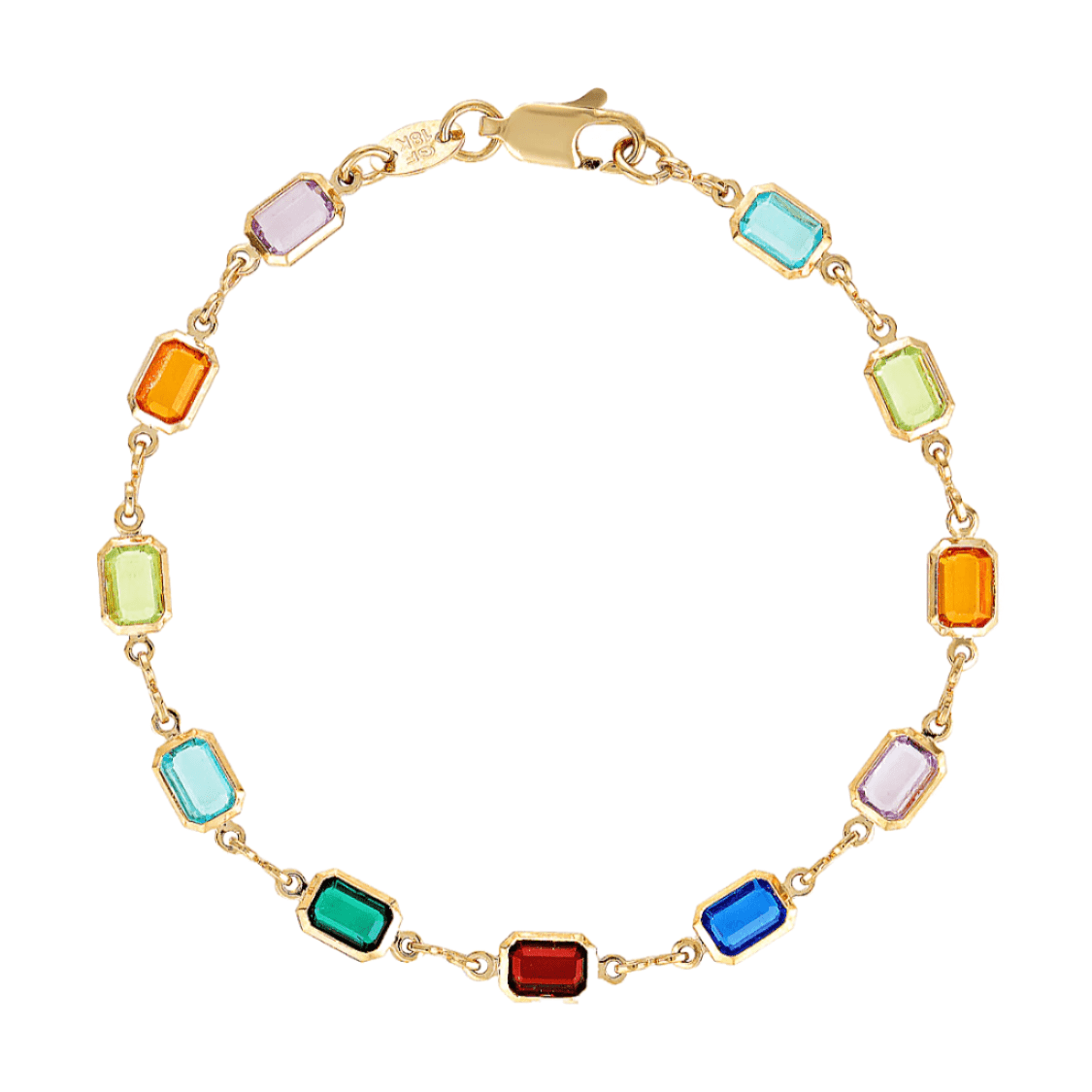 We’ve got just the thing to add some colour to your life - our Rainbow Bracelet! Made from crystal cut glass gemstones and accented with 18k gold filled details, this bracelet is super stylish. Plus, with its vibrant pastel or bright colours, it's sure to bring a smile to your face.