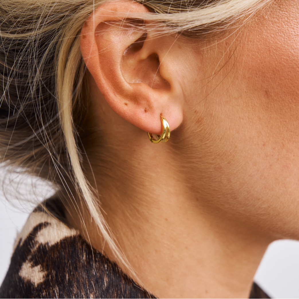 The Agnes Huggies are a cute little double hoop for double the look in one luxe huggie. Easy to wear and style for classic everyday elegant looks.