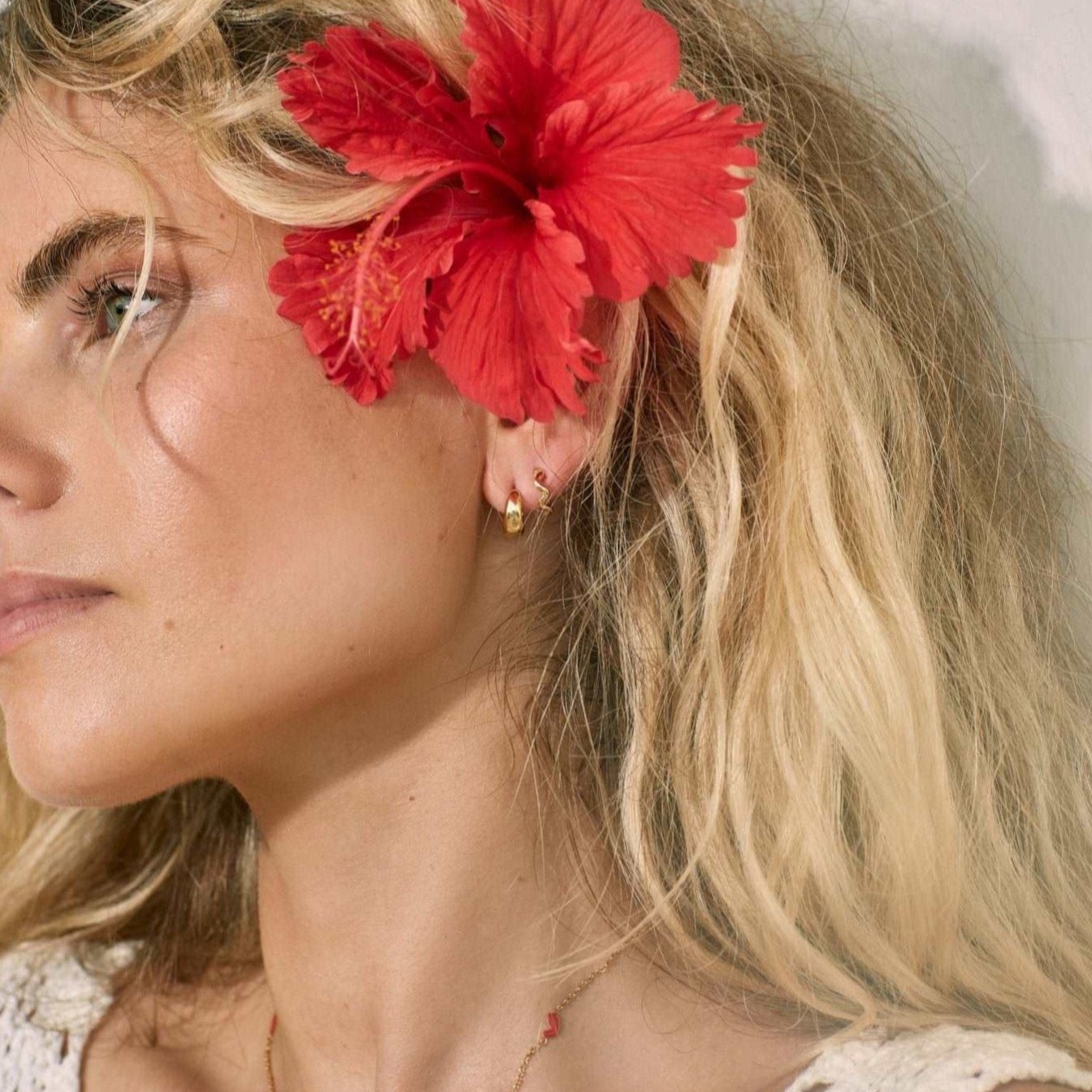 Chlorine and salt are corrosive chemicals though and so they will limit the life of your jewels with prolonged exposure. Rinse them in clear water after an ocean dunk and keep them away from retinol and sunscreens - that’s only good for your face 😉 - Careful handling will keep you and your jewels golden!