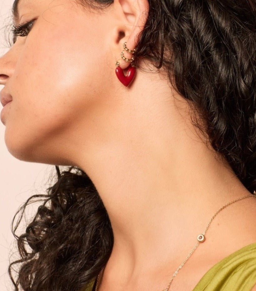 Fall head over heels for the Red Velvet Hearts—the earrings that bring romance, edge, and a pop of confidence to every outfit. With their rich blood-red enamel and playful heart shape, these aren't just earrings; they're a mood, a statement, a love letter to your bold side.